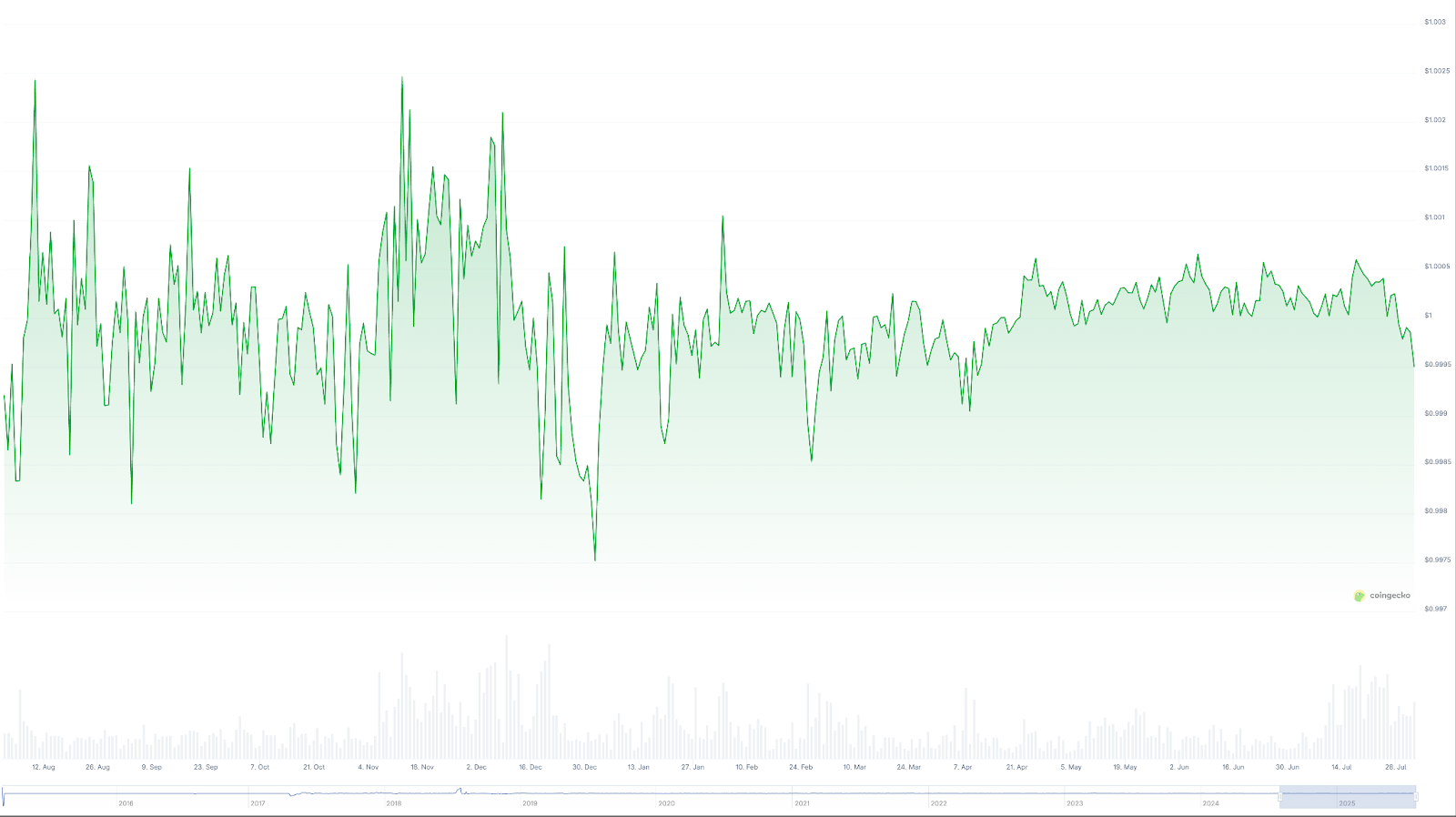 With a $164 billion market cap, and over $116 billion in 24-hour trading volume as of August 1, 2025, USDT is an incredibly efficient and liquid instrument.